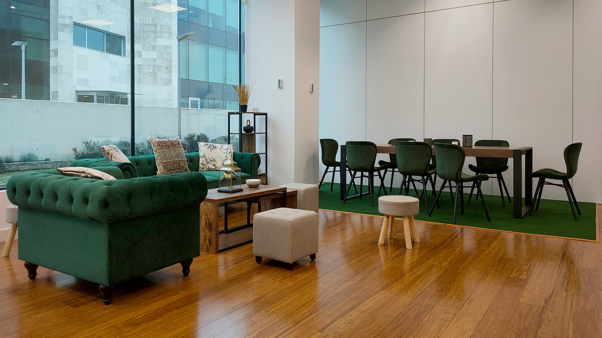Alquila tu oficina totalmente personalizada para organizar tu trabajo con los servicios generales incluidos. Con acceso 24/7 podrás disfrutar de las mejores vistas con iluminación natural al recinto Charmex Green Building.
